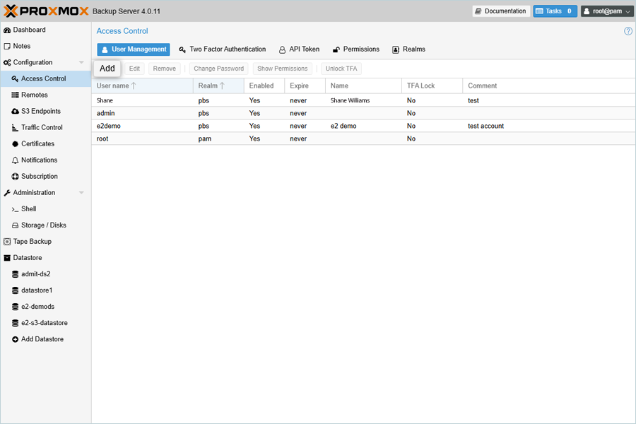 - Click Add and select Proxmox Backup Server from the list to add a new data center.
