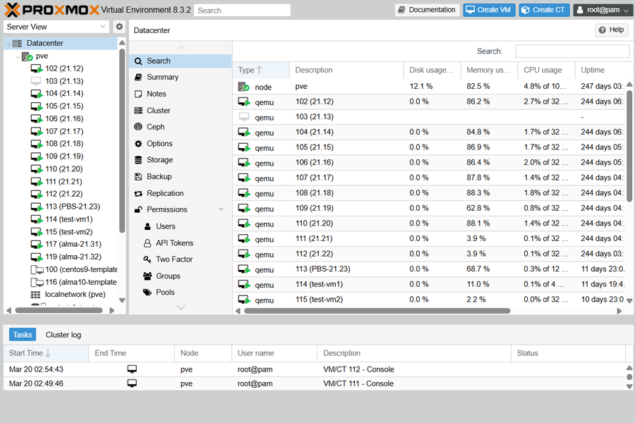 - Log in to your Proxmox Virtual Environment and click Datacenter in the Dashboard.