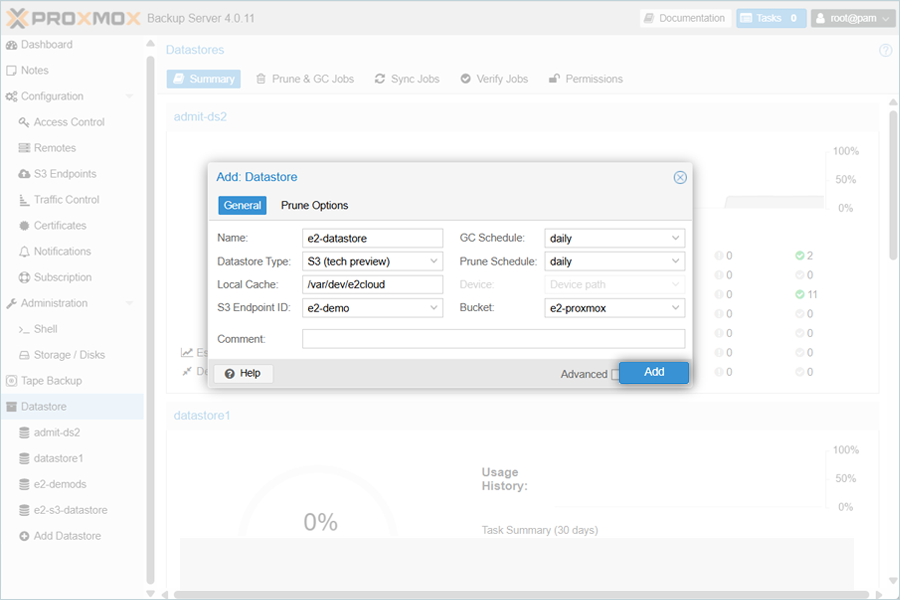 - Select your added e2 endpoint as S3 Endpoint ID.