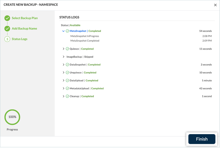 - Once the backup plan is created, click Finish.