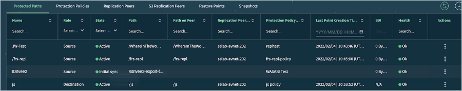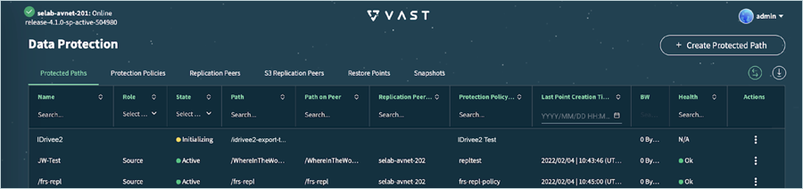 - The newly created path is listed under Protected Paths. It goes through Initializing, Initial Sync, and finally into the Active state.