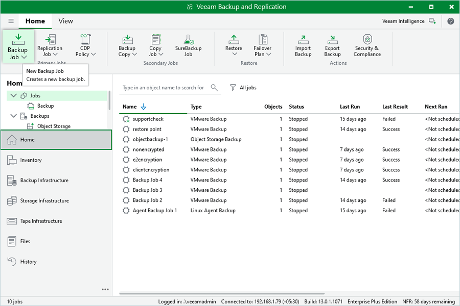 - Install the Veeam Backup & Replication application on a supported OS on your machine.