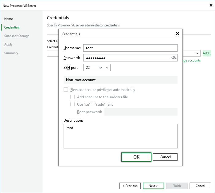 - Under Credentials, click Add to add your ProxMox Credentials.